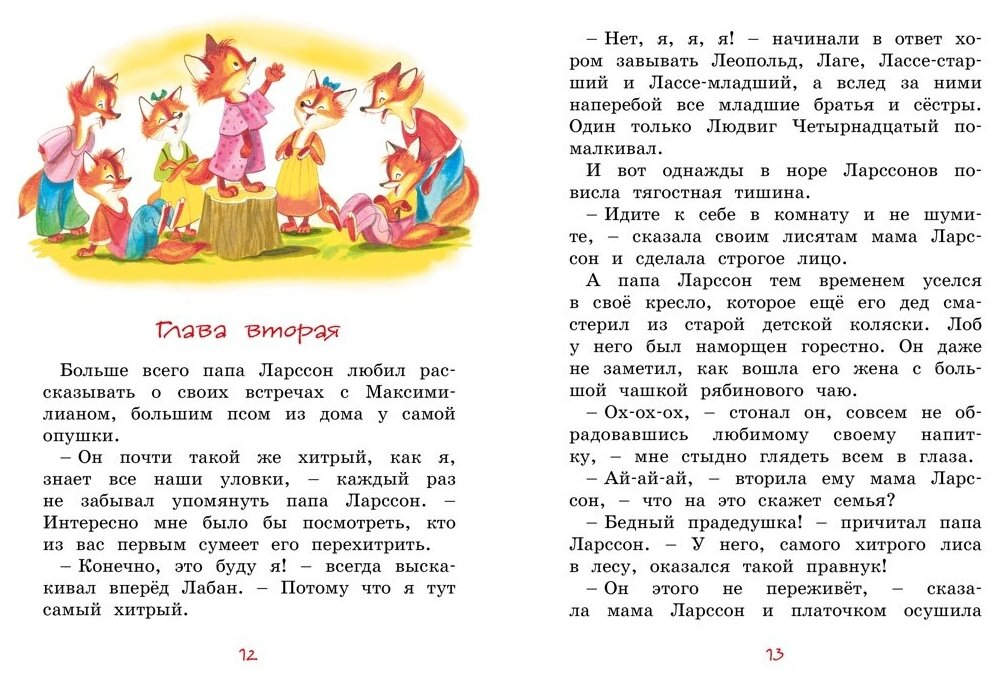 Очень добрая детская книга о приключениях хитрого лисёнка Людвига Четырнадцатого, о его сопротивлении лисьим повадкам и нежеланию обманывать других. Это история о настоящей дружбе, автор поднимает истинные и вечные ценности - так здорово с малолетства приучаться к этому по таким ярким по повествованию и картинкам книгам. Людвиг, самый младший, сталкивается со многими препятствиями при соблюдении своих принципов, борется со стереотипами, учится выживать и находить неожиданные решения для сложных проблем - и везде заводит себе друзей. И никогда не бросает друзей в беде. Книга немаленькая, при неспешном чтении хватит надолго. История храброго лисёнка и не менее отважной Тутты Карлссон полна юмора и курьезных ситуаций, схожих с реальной жизнью людей.