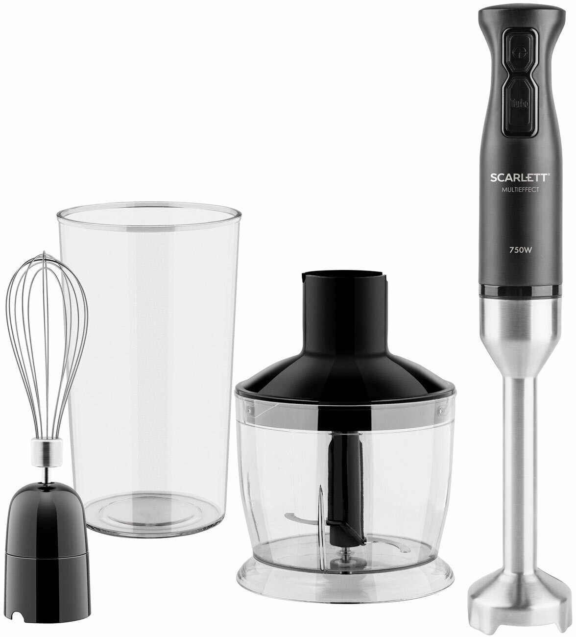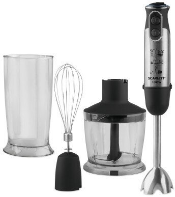 Погружной блендер Scarlett – надежный и незаменимый помощник, с которым работа на кухне станет для вас удовольствием. Блендер укомплектован насадкой для измельчения и смешивания, мини-измельчителем, венчиком для взбивания и мерным стаканом. Дополнительно к импульсному режиму прибор оснащен режимом Turbo. Его достаточно активировать на 15-30 секунд в конце приготовления для получения идеальной массы без комочков. Цельнометаллическая погружная часть блендера, как и все его металлические части выполнены из нержавеющей стали марки STEEL PRO, которая прекрасно справится с продуктами любой температуры и консистенции.