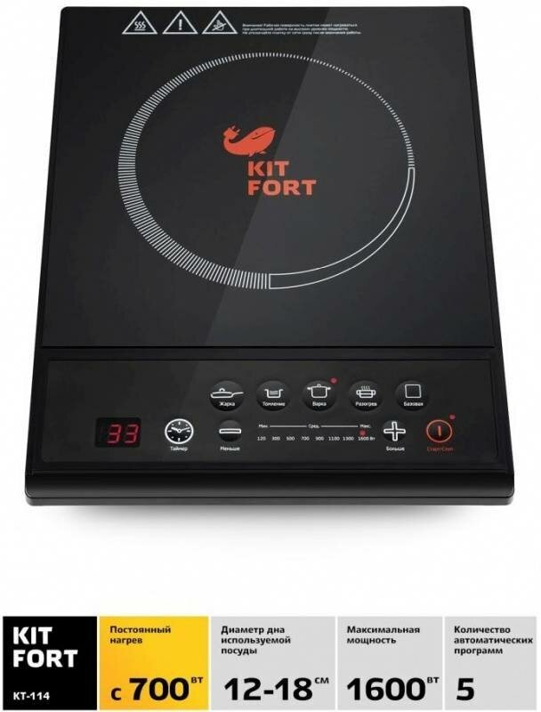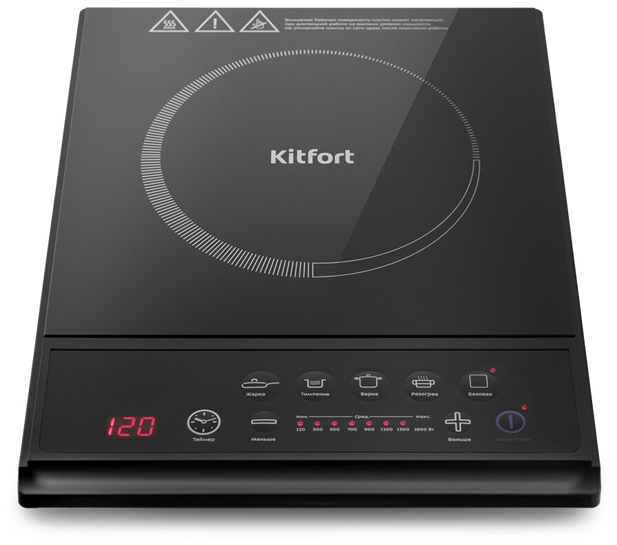Индукционная плитка Kitfort - практична, экономична. Эта плита использует современные технологии, позволяющие готовить вкусно, быстро и абсолютно безопасно. Такая плита практически исключает вероятность получения ожогов и не нагревает воздух в помещении. Данная плитка выполнена в пластиковом корпусе с рабочей поверхностью из стеклокерамики, и обладает максимальной мощностью 1600 Вт.