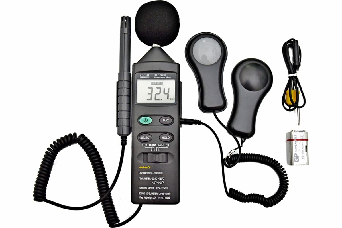 - Шумомер Люксметр Влагомер Термометр CEM DT 8820