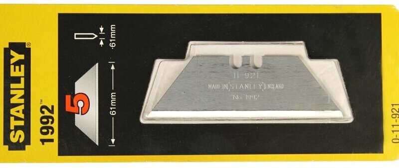 Лезвие трапеция для отделочных работ 62x19x0.65 мм Stanley (без отверстий, 5 шт.)