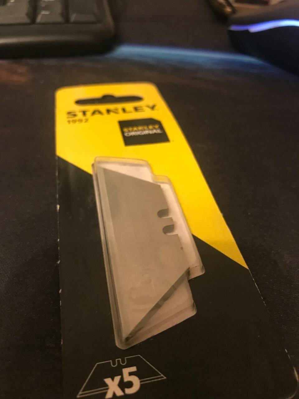 Обзавестись лезвиями Стенли порекомендовал отец и я остался доволен качеством продукции данного бренда. Трапециевидный клинок обладает безупречной остротой, которая легко и четко разрезает винил, ковролин, линолеум – будто раскаленный нож горячее масло. Лезвия долго не тупятся, особенно если нечасто пользоваться, то одного хватит на несколько лет. Набор включает в себя 5 единиц, что будет кстати в случае постоянной эксплуатации. Сам клинок очень прочный, просто согнуть в руках невозможно, даже с приложенными усилиями. Покупку осуществил в данном магазине, который на площади Адама Мицкевича находится.