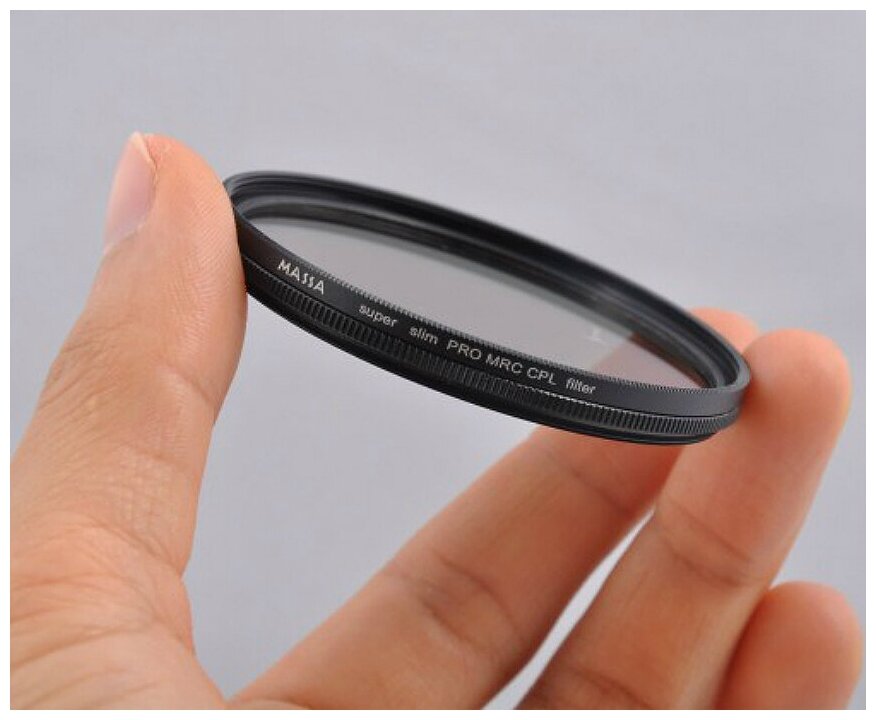 Профессиональная серия фильтров Massa Super Slim MRC CPL относится к высшей категории светофильтров и рекомендована для использования на профессиональной оптике. Супер тонкие профессиональные светофильтры Massa Slim CPL отличает от обычных светофильтров наличие тонкой рамки толщиной всего 7 мм что практически исключает виньетирование при съёмке с широкоугольными объективами. Фильтры Massa Slim CPL имеют двухстороннее 16 слойное мультиустойчивое просветляющее покрытие, обеспечивающее почти 100% пропускание света. Так же данное покрытие делает фильтр более устойчивым к повреждениям. Все фильтры Massa комплектуются оригинальным, защитным пластиковым чехлом. Преимущества фильтров Massa:Super Slim - cупер тонкая рамка толщиной всего 7 мм предотвращает виньетирование при съемке с широким углом объективаMRC CPL двухстороннее 16-ти слойное просветляющее мультиустойчивое покрытие обеспечивает почти 100% пропускание света, что предотвращает затемнение кадрасупер высокое разрешение фильтракристально высокое оптическое качество фильтразащитное покрытие делает фильтр устойчивым к повреждениямпередняя резьба позволяет удобную стыковку с дополнительными фильтрами или крышку объективавысокое качество и точность обработки металлического кольца фильтра и оптической поверхности фильтра