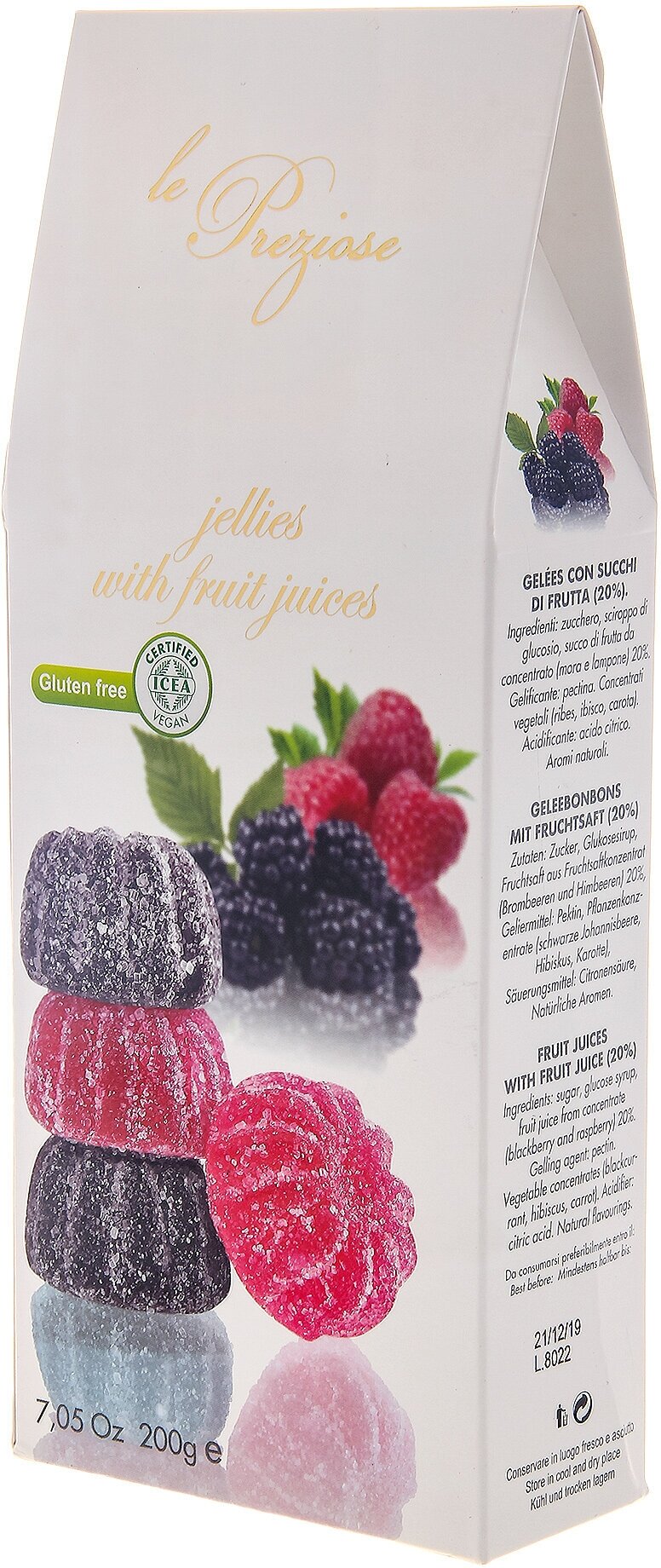 Мармелад из малины и ежевики от итальянского бренда Le preziose - результат кропотливой работы лучших кондитеров. Настоящее удовольствие, которое оценят даже люди с непереносимостью глютена.