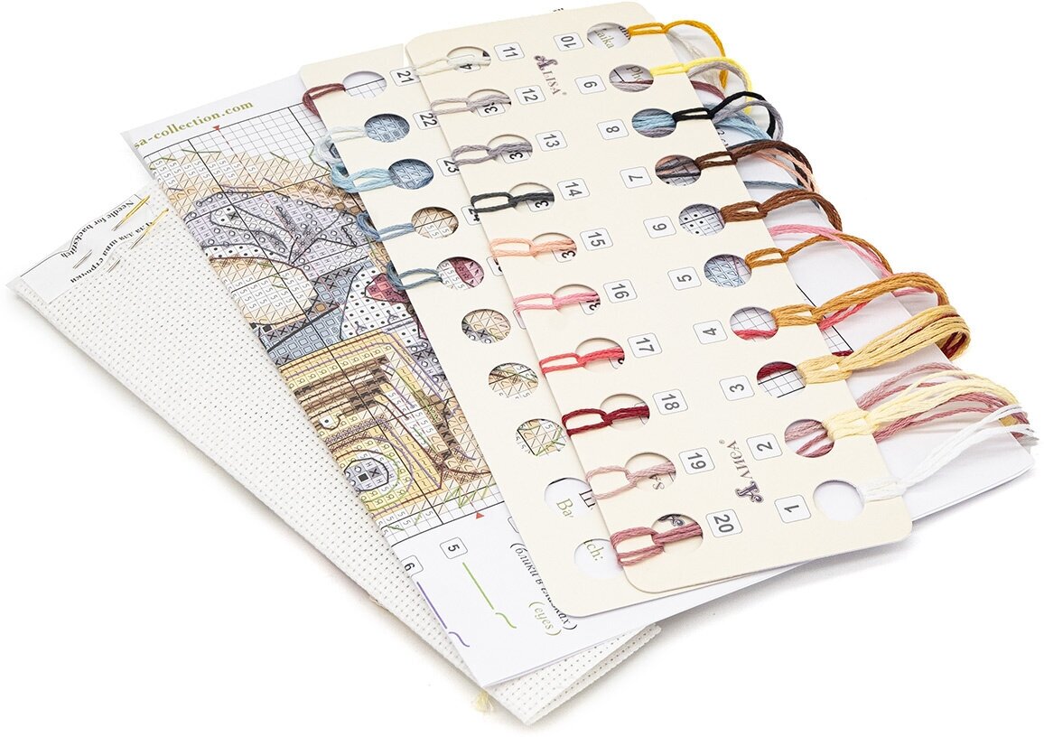 Техника вышивания: Счетный крест (Counted Cross Stitch) Размер: 10х13 см. В составе набора: канва для вышивания Aida 14 белого цвета, хлопковые нитки мулине (разобранные на органайзере), игла, цветная символьная схема, инструкция. Паспарту и рамка в комплект не входят Обратите внимание: из-за индивидуальных настроек вашего монитора возможны расхождения в точности передачи цветов.