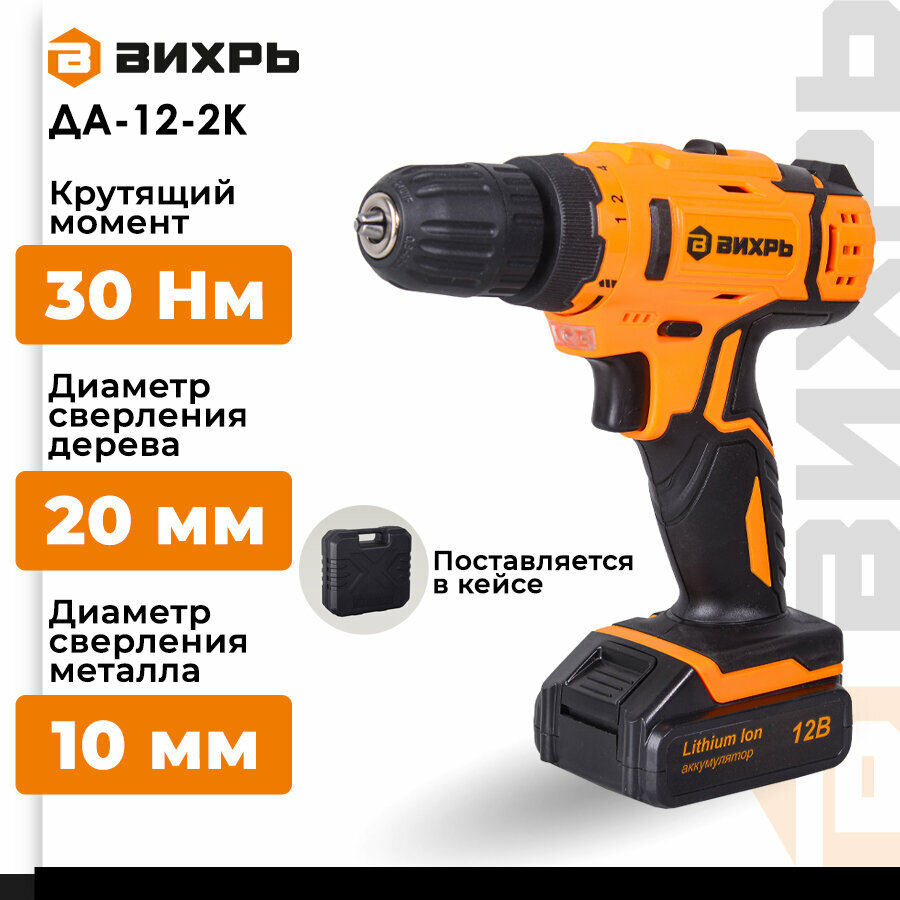 Аккумуляторная дрель-шуруповерт Вихрь ДА-12-2к