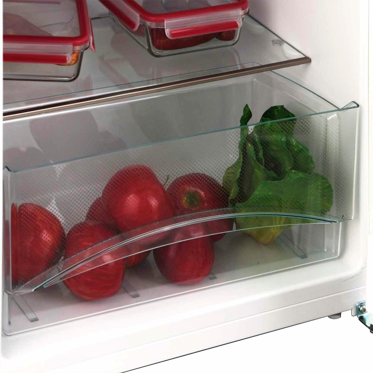 Брали этот холодильник для бабушки. Живет она одна, поэтому в большом холодильнике смысла нет, до этого был и ей было неудобно тянуться на верх, все продукты лежали на нижних полках, а морозилка была практически пустой, поэтому в этот раз решили рассмотреть невысокие холодильники с верхней морозилкой, т.к холодильная камера в приоритете. Плюс кухня маленькая,поэтому нужен был ещё и не широкий. Просмотрев все варианты остановились именно на данной модели. Он отлично вместился на кухню, только переновесили двери,чтоб не ударялся о подоконник, предыдущий холодильник стоял в коридоре. Несмотря на то, что высота и ширина небольшие, он глубокий (63см-обращайте на это внимание), за счёт этого холодильник более вместительный, помещается в него много продуктов. Мы покупаем продукты бабушке сразу на неделю-две вперед и вопрос как это все сложить ни разу не возник. Капельная система, всем нам известная, отлично сохраняет продукты, особенно овощи/фрукты. И так -морозильная камера. Она небольшая, всего два отделения внутри, для большой семьи конечно маловато, но для одного человека более чем достаточно. Да и в принципе если вы не замораживаете много продуктов,даже для семьи из двух-трёх человек её бы хватило. Аккуратно разложить расфасованные продукты не составит труда. Когда нам нужно было заморозить большой кусок мяса мы просто убрали стекло-все отлично вместилось . Так что морозильная камера не такая уж и маленькая как кажется на первый взгляд. Продукты в морозильной камере не перемораживаются, не образуется большого количества льда у стенок морозилки. Размораживание ручное, но с такой камерой это займёт час максимум. Из общих характеристик: работает бесшумно, хорошее качество пластика и полок в холодильнике. Рады что остановились на этом выборе, и бабушка очень довольна. Теперь рассматриваем такой холодильник на дачу!