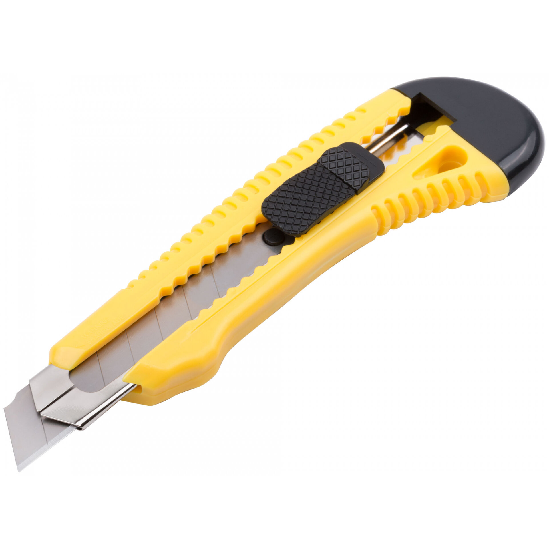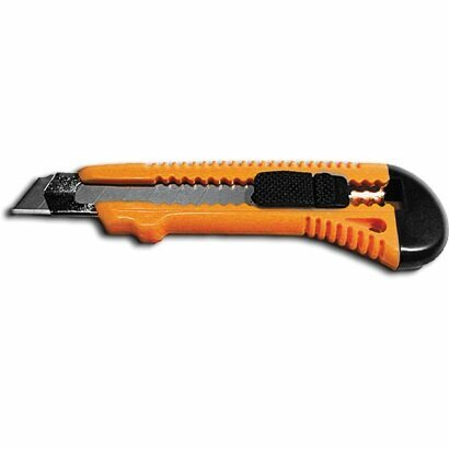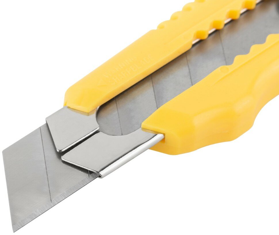 «Отламывающееся» лезвие с пластиковым прижимом. Материал: корпус из пластика, усиленный металлической направляющей.