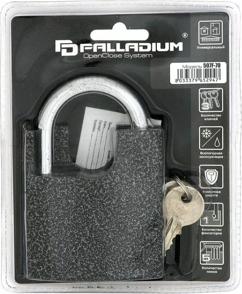 Модель: Замок навесной PALLADIUM 507F-70 серый
