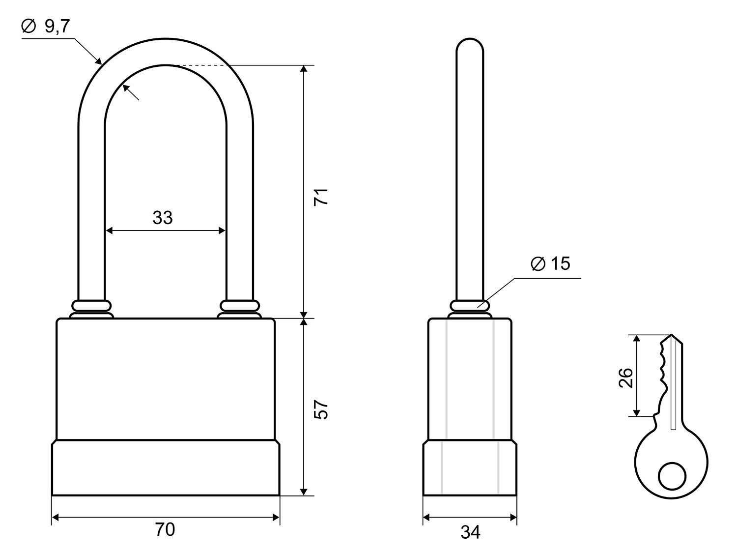 Всепогодный навесной замок с длинной дужкой. Прекрасно работает в любую погоду благодаря водонепроницаемой конструкции. Высокий проем дужки позволяет завести замок через высоко приваренные расположенные или широко расставленные петли.