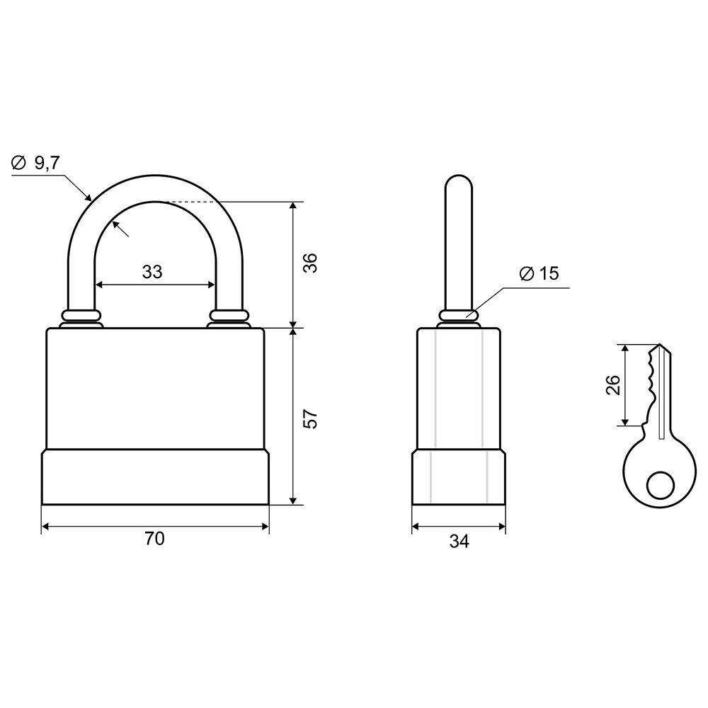 | Внутренняя высота дужки (в закрытом состоянии) (мм) | 36 |