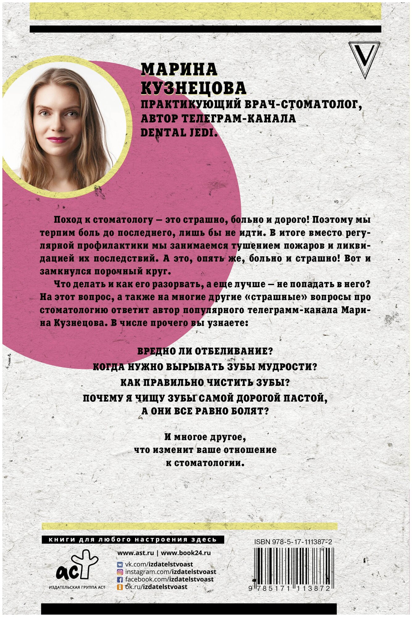 Большое спасибо за книгу! Всё самое важное, что нужно знать о своих зубах обычным людям: зачем нужна профилактика, чем отличается лечение в поликлиниках от частных клиник, рекомендации по пастам и щёткам и другие полезные в жизни зубов советы :) Книга небольшая, прочитал за вечер-утро. Всё по делу, плюс понравились истории из жизни.