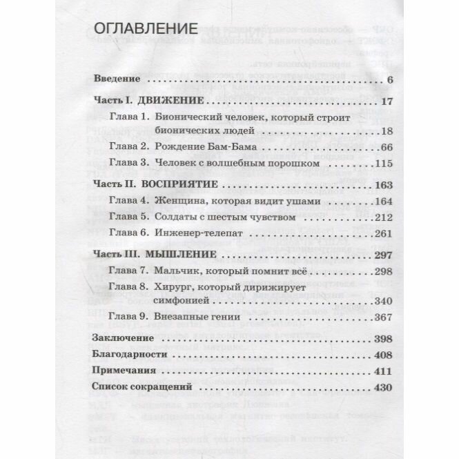 Эта книга — о науке и медицине, о том, как можно улучшить человека и усилить или развить его способности. В первой части, посвященной физическим возможностям, рассказывается о бионике, генетических методах и регенеративной медицине. Во второй части раскрываются вопросы, касающиеся тонкой сферы чувств. Вы узнаете о нейропластичности мозга, интуиции и телепатии. В третьей части речь идет о способности мыслить, механизмах памяти, операциях на мозге и различных методах его стимуляции, о возможностях расширения сознания. В тексте много интересных историй о судьбах ученых, врачей и простых людей, у которых проявились те или иные неординарные способности. Пиорей рассказывает о людях, сумевших побороть свои недуги, — научившихся покорять вершины с помощью искусственных ног, видеть ушами и многому другому.
