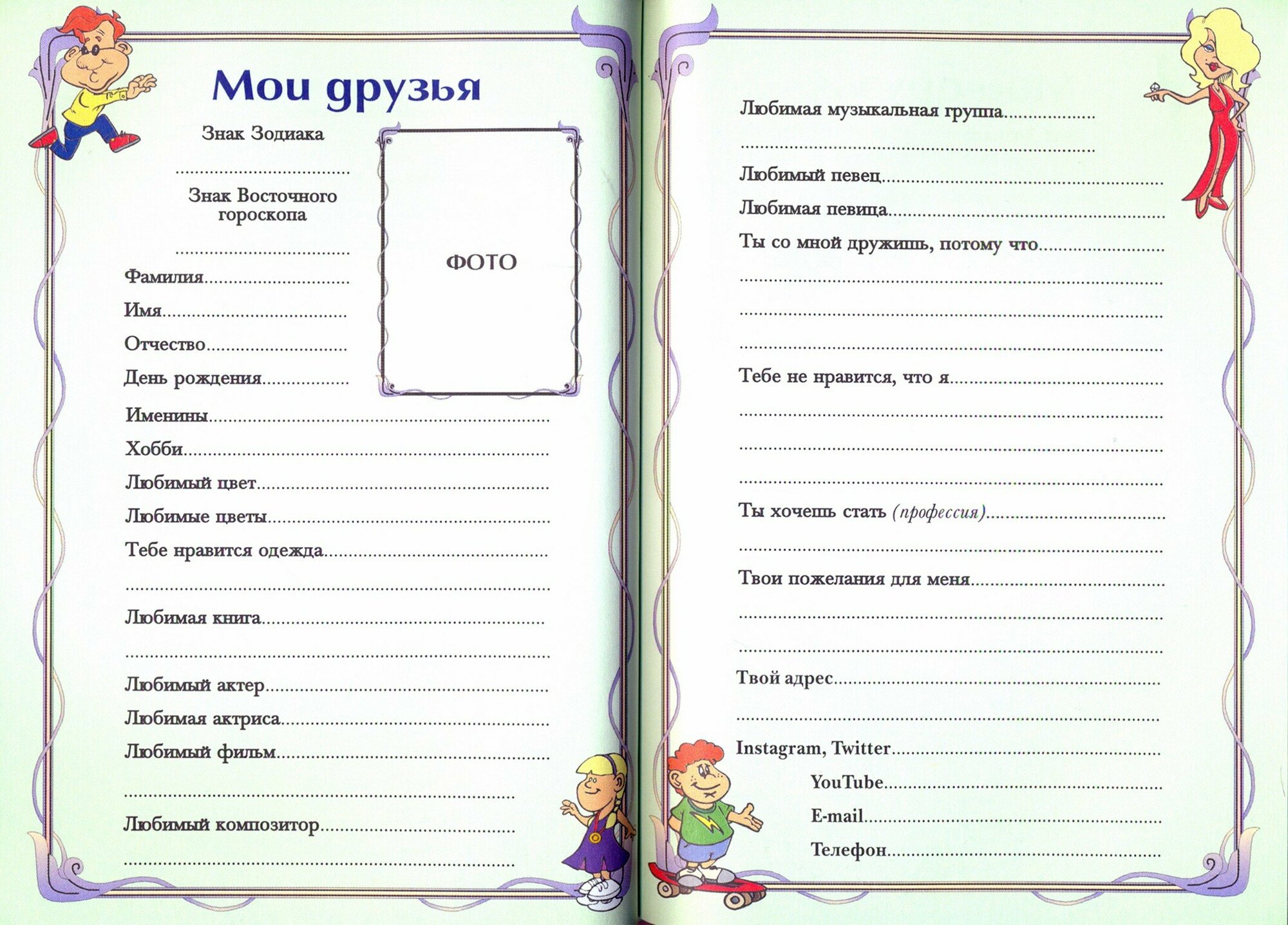 | Тип | анкета и личный дневник |