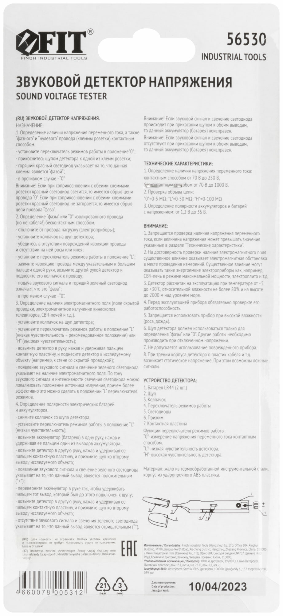 | Тип | контактно - бесконтактный пробник напряжения |