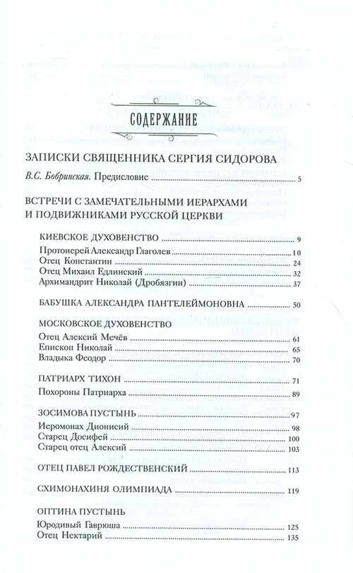 Жизнеописание священника Сергия Сидорова (1895-1937), составленное его дочерью, B.C. Бобринской (1925-2003), ярко воссоздает атмосферу жизни гонимого российского священства в 1920-1930-е годы; в него включен также ряд фрагментов записок отца Сергия, не вошедших в основной свод.