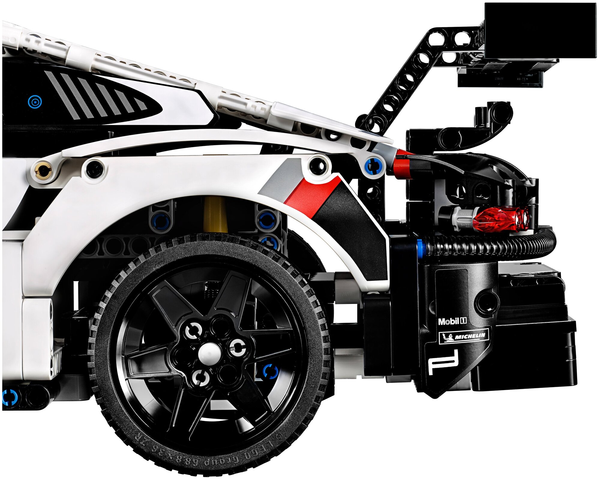 Познакомься с инновационными инженерными решениями и уникальными традициями мастерства одного из ведущих мировых производителей автомобилей с этой удивительной моделью Porsche 911 RSR LEGO® Technic. Копия оригинального автомобиля, разработанная в сотрудничестве с компанией Porsche точно передаёт яркий образ, характерный для её прототипа, и его знакомый многим силуэт, который был специально создан таким образом, чтобы выдерживать огромные нагрузки на гонках серии GT. Внешний облик автомобиля дополнен задним крылом «Лебединое шея», задним диффузором и специальными боковыми зеркалами. Это сделано для достижения максимальной аэродинамической эффективности. Открыв двери, ты обнаружишь салон со множеством реалистичных деталей: экран радара, функционирующее рулевое управление, систему тушения огня и даже карту трека Лагуна Сека, которая напечатана на двери водителя. Эта удивительная модель также имеет видимый, работающий дифференциал, независимую подвеску и шестицилиндровый оппозитный двигатель с двигающимися поршнями, расположенный перед задней осью. Колёса с чёрными спицами, реалистичные фары и задние фонари, а также аутентичная бело-чёрно-красная цветовая гамма, дополненная наклейками, вносят завершающие штрихи в образ этого невероятного суперкара LEGO!