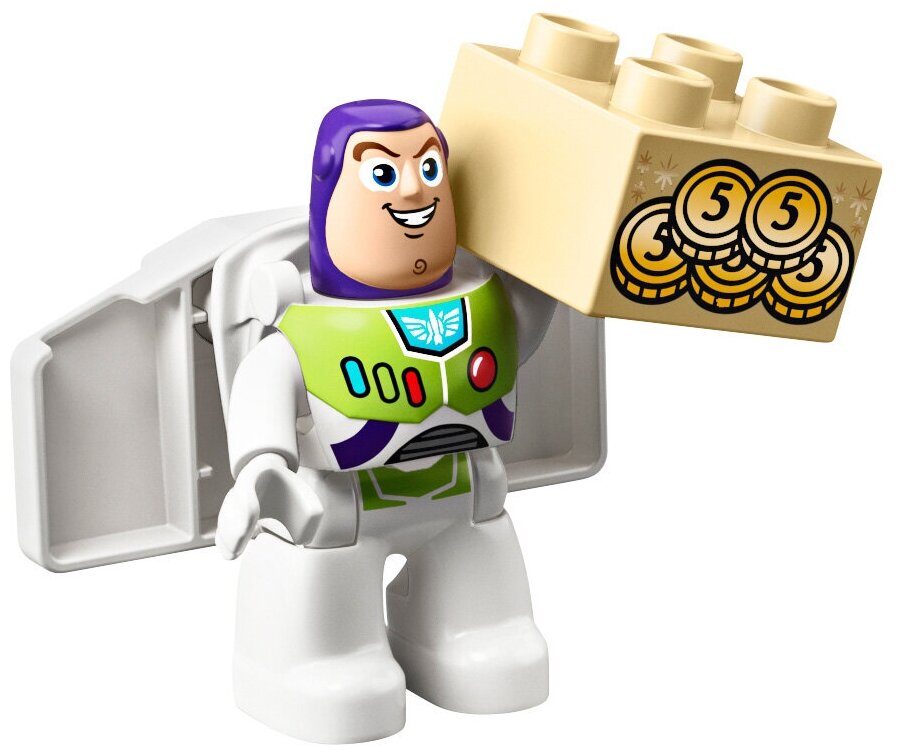 Помогайте маленьким фанатам мультфильма «История игрушек» от Disney Pixar развивать воображение и придумывать новые сюжеты для ролевых игр. Прокатитесь на поезде вместе с Вуди и Баззом Лайтером. Научите детей работать в команде и помогите им развивать свои социально-эмоциональные навыки, следуя примеру любимых детьми персонажей, которые пытаются защитить хранилище банка от злого доктора Хэмма, фото которого красуется на плакате «Их разыскивает полиция». Малыши с лёгкостью соберут этот классический паровоз, уже в раннем воз расте развивая навыки конструирования и мелкой моторики в знакомых декорациях мультфильма Pixar. В набор входят 2 фигурки LEGO DUPLO: Вуди и Базз Лайтер.