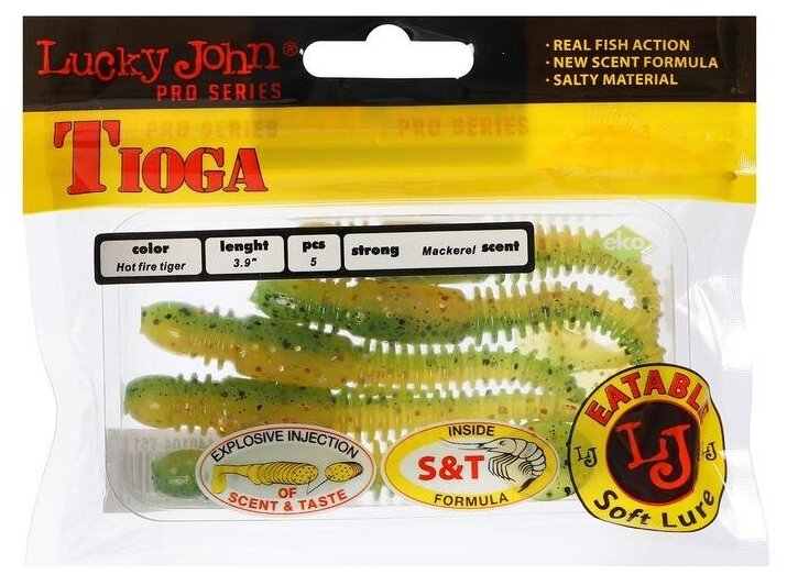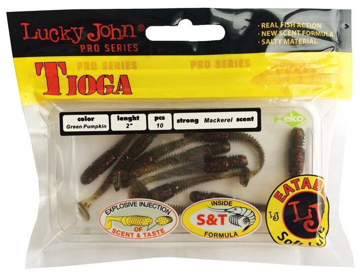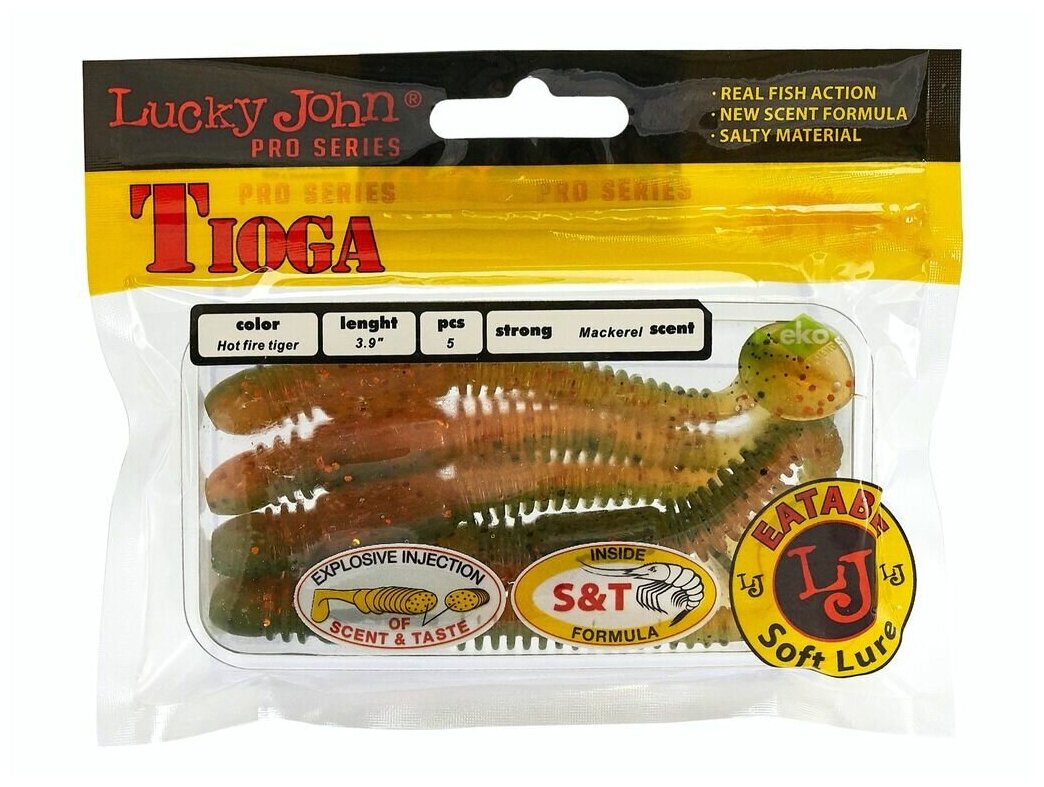 Tioga – приманка, разработанная специально для ловли окуня и судака. Оригинальная форма тела, при движении в воде генерируют привлекающие хищника колебания. Боковые ребрышки усиливают игру приманки, придавая ей «живые» движения. Гибридная приманка имеет червеобразное тело с характерным утолщением в передней части и небольшой хвостик-копытце от виброхвоста. Приманка обладает привлекательным запахом макрели. Tioga 51 и 61 мм – лучшие приманки для микроджига, причем монтировать их можно как на джиг-головке, так и на офсетном крючке. Более крупные приманки – Tioga 99мм оптимальны для классического джига, а Tioga 75мм может успешно применяться в самых различных разнесенных оснастках. Самые мелкие приманки привлекают внимание окуня, бычка-ротана и другой «микроджиговой» рыбы. Модели покрупнее – заинтересуют щуку и судака. Формула Scent&Taste Inside Formula гарантирует то, что после поклевки, рыба будет максимально долго удерживать приманку во рту, что позволит всегда и своевременно выполнить результативную подсечку