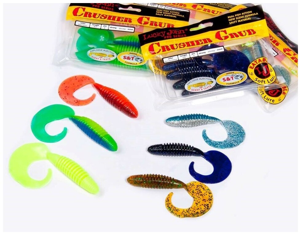 Съедобные искусственные твистеры LUCKY JOHN LJ Pro Series CRUSHER GRUB 3,9in, цвет PA19, 5шт. 140157-PA19 разработаны специально для ловли крупного хищника, судака и щуки. Исполнена в форме твистера и имеет массивное ребристое тело. Этот элемент придаёт дополнительные вибрации при проводке приманки и оказывает еще большее влияние на хищника. В состав материала приманки включена соль и аттрактант с запахом макрели, что придаёт приманке элемент «съедобности»