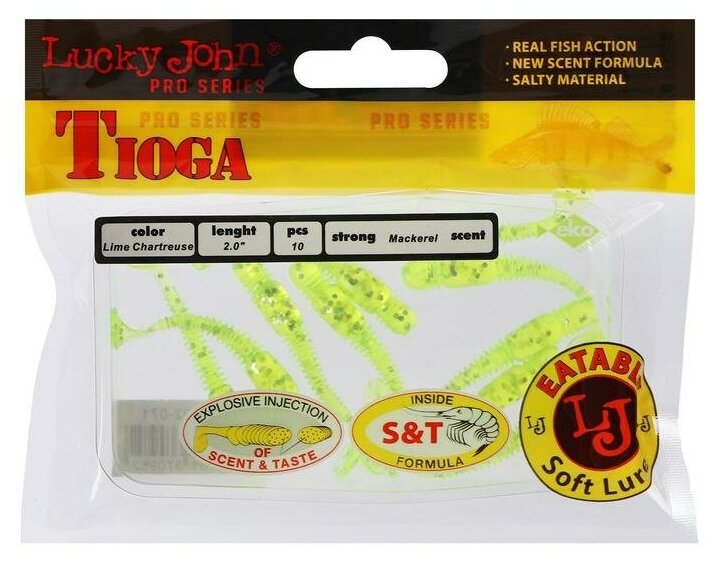 Характеристики:• Длина: 5 см.• Форма: виброхвост.• Тип приманки: съедобная.• Кол-во в упаковке: 10 шт.• Цветовые оттенки: шартрез.• Плавучесть: тонущая.• Цвет: 71.Tioga – приманка, разработанная специально для ловли окуня и судака. Оригинальная форма тела, при движении в воде генерируют привлекающие хищника колебания. Боковые ребрышки усиливают игру приманки, придавая ей «живые» движения. Гибридная приманка имеет червеобразное тело с характерным утолщением в передней части и небольшой хвостик-копытце от виброхвоста. Приманка обладает привлекательным запахом макрели. Tioga 51 и 61 мм – лучшие приманки для микроджига, причем монтировать их можно как на джиг-головке, так и на офсетном крючке. Более крупные приманки – Tioga 99мм оптимальны для классического джига, а Tioga 75мм может успешно применяться в самых различных разнесенных оснастках. Самые мелкие приманки привлекают внимание окуня, бычка-ротана и другой «микроджиговой» рыбы. Модели покрупнее – заинтересуют щуку и судака. Формула Scent&Taste Inside Formula гарантирует то, что после поклевки, рыба будет максимально долго удерживать приманку во рту, что позволит всегда и своевременно выполнить результативную подсечку.