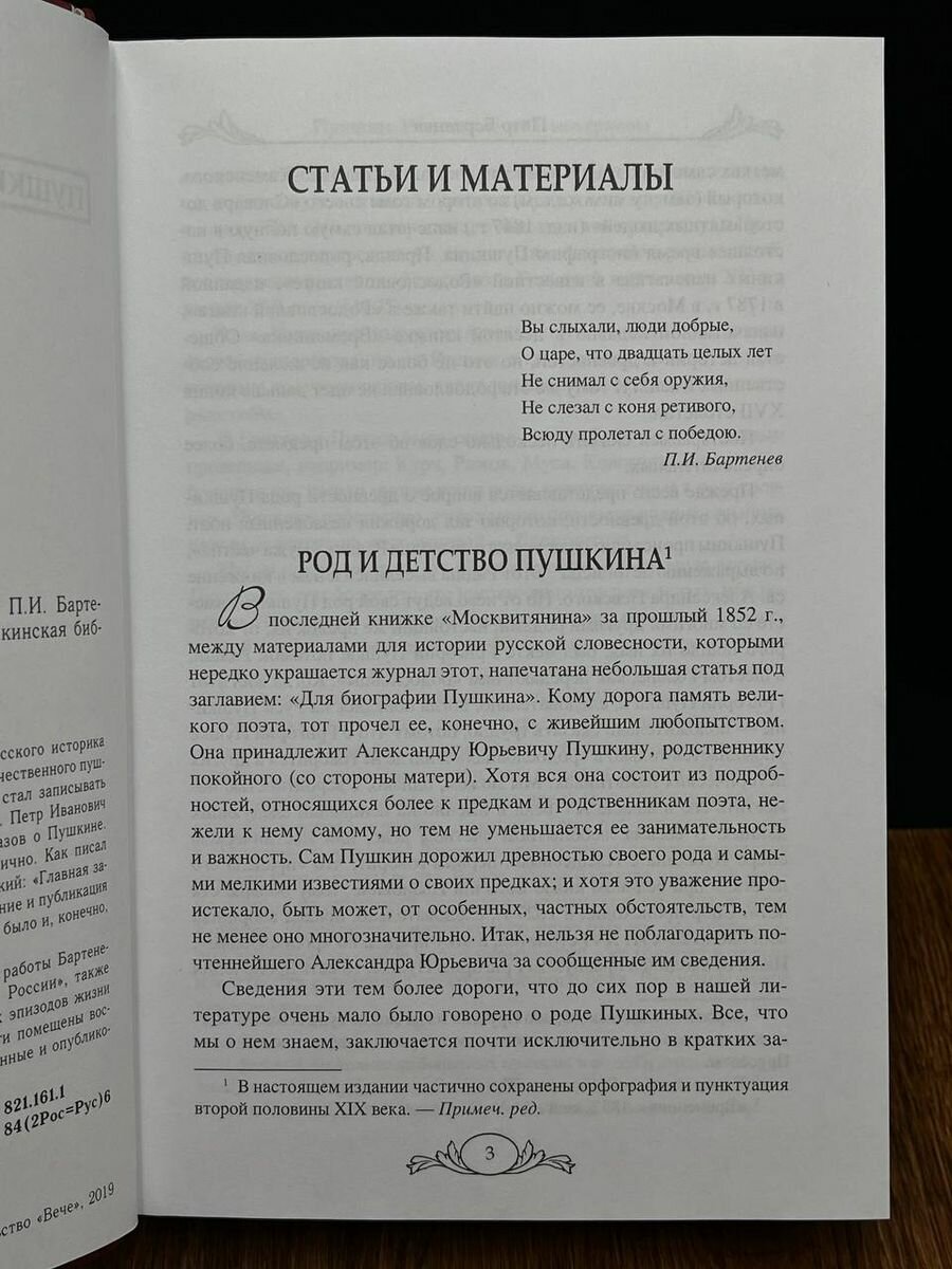 Пушкин. Исследования и материалы (Бартенев Петр Иванович); Вече, 2019