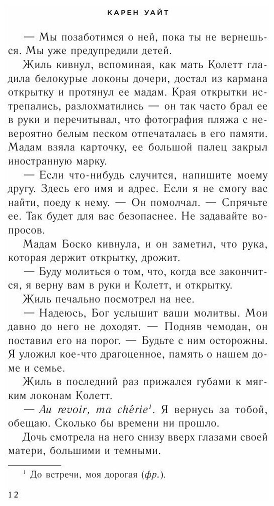 Новая, 7 по счёту, книга Карен Уайт. Издание в духе серии: закруглённые уголки, закладка-ляссе (почему-то её не было в предыдущей книге "Музыка ветра"), листы тонкие, но бумага хорошего качества, шрифт крупный, роман большой - 544 страницы. Новым стало оформление в стиле софт-тач - тактильная, бархатистая обложка. Внутри снова таинственная история, которую предстоит разгадать, главы из прошлого и настоящего, перевод хороший, но не идеальный. О самом сюжете рассказывать не стану - прочитайте и составьте собственное мнение, мне понравилось, автор в десятки раз сильнее Сары Джио, но менее прославлен. У Карен Уайт уже больше 20 романов, так что издательство скоро снова порадует нас новинками. Иллюстрации прилагаю.