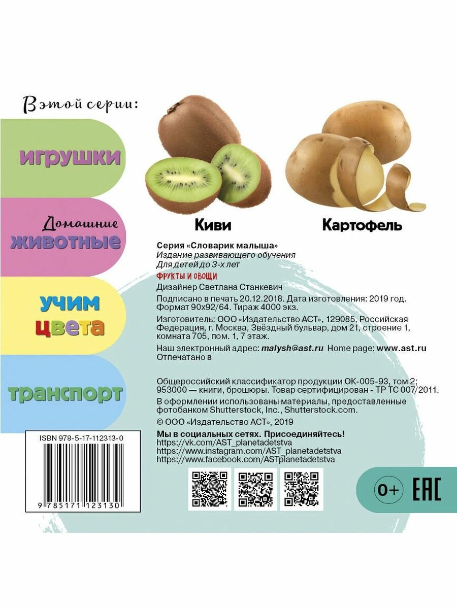 Это настоящие первые мини-словарики для самых маленьких читателей, в которых использован инновационный и ставший популярным у родителей материал EVA FOAM. В книге использованы реалистичные изображения: современный дизайн понравится родителям, а яркие картинки обязательно привлекут внимание малышей. В этой книжке собраны самые известные фрукты и овощи, а можно собрать целую коллекцию словариков для самых маленьких исследователей. Знакомиться с этим большим миром теперь так просто и интересно!