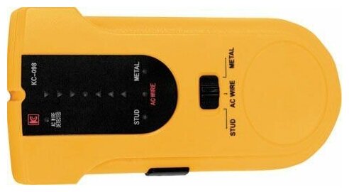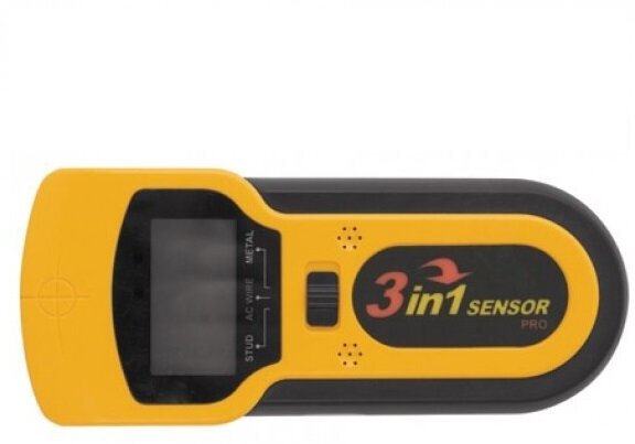 Профи. Детектор скрытой проводки, напряжения в сети, скрытых балок (в том числе и деревянных) в одном приборе. Точная локализация объекта. Источник питания: батарейка 9 V типа «Крона». Упаковка: блистер.