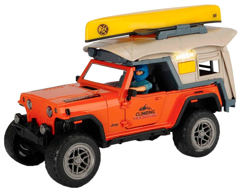 - В наборе представлен не только реалистичный джип, но и фигурка туриста, который отправляется на своем автомобиле к горной реке.