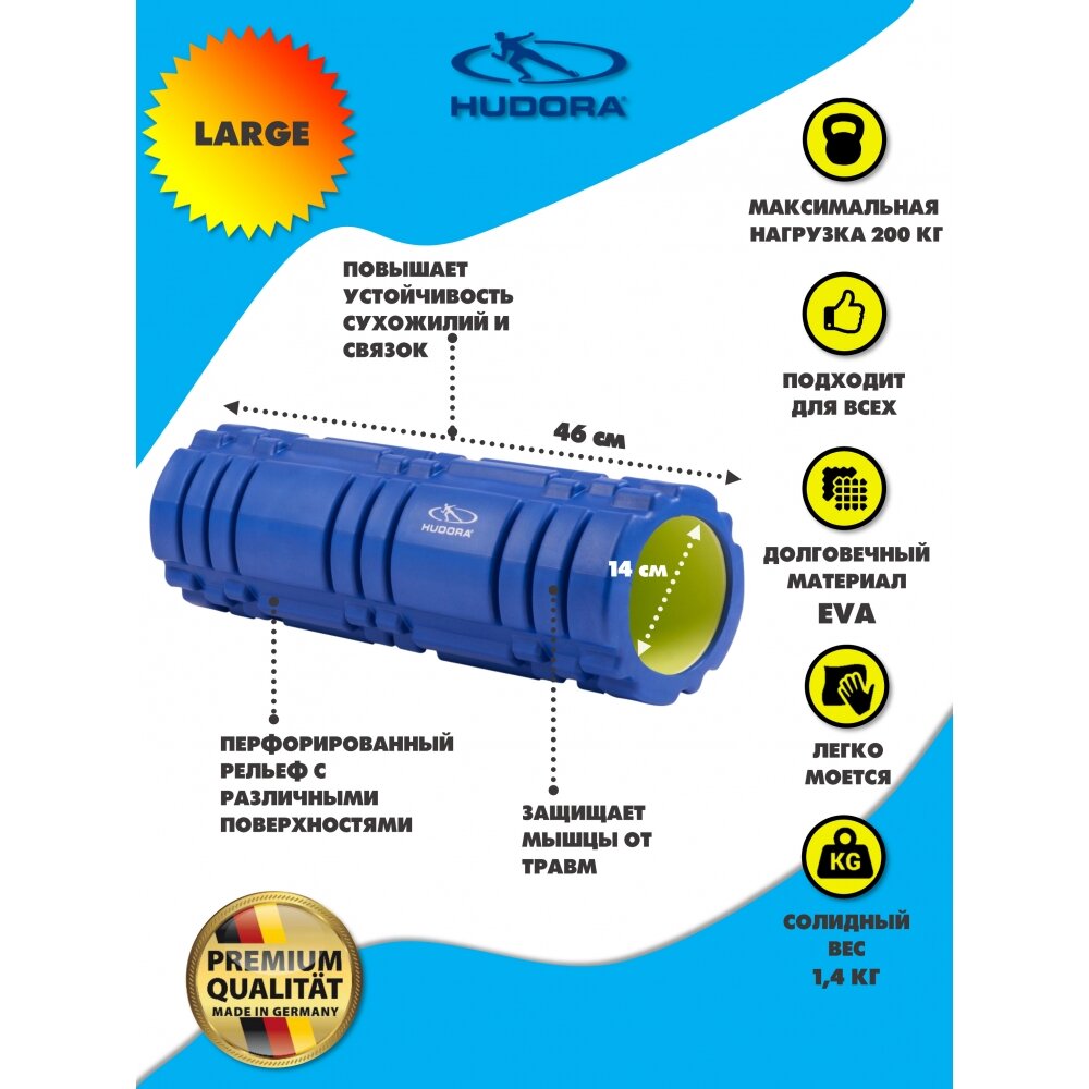 Ролик для йоги и пилатеса Hudora 46x14 см синий Массажный ролик большой 14х46 см