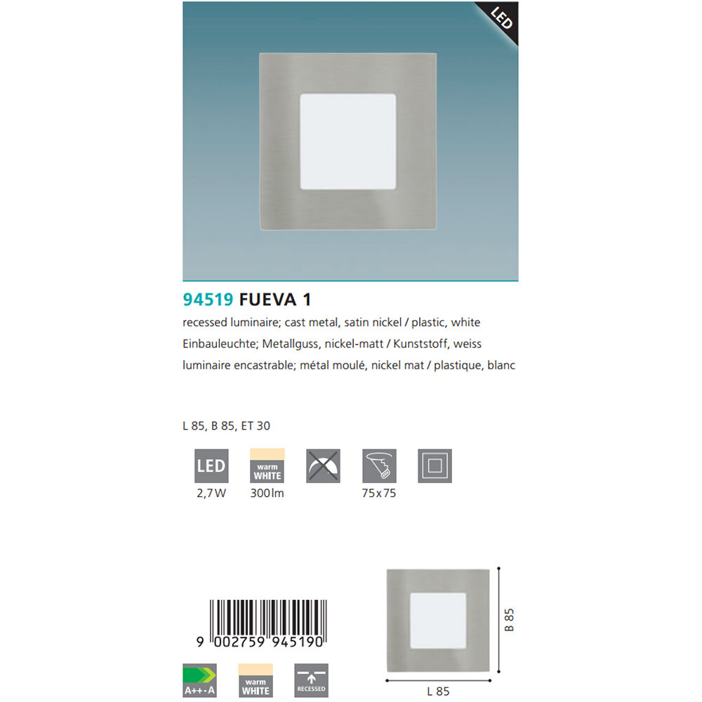 Светильник встраиваемый Eglo Fueva 94519