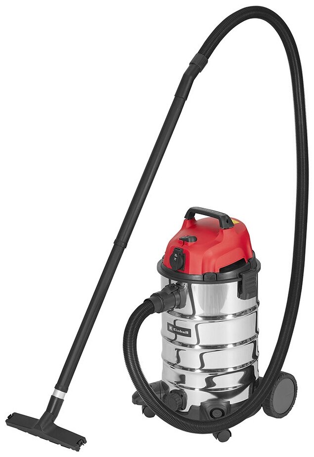 Универсальный и мощный пылесос Einhell мощностью 1500 Вт с возможностью влажной и сухой уборки рабочих мест, дома, гаража или автомобиля. Встроенный бак из нержавеющей стали имеет емкость 30 литров. 2 больших колеса и 2 поворотных колеса для большей мобильности. 1 всасывающий шланг 36 мм, 2,5 м.
