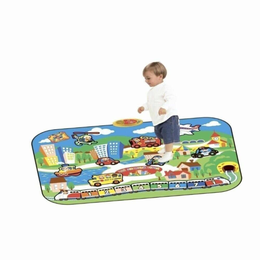 Сверху к коврику прикреплен электронный блок управления, на котором находится кнопка включения и выключения, динамик, через который раздаётся все звуки. Электронный блок управления работает от 3 батареек типа АА (пальчиковые) входят в комплект поставки. Верхний слой музыкального коврика сделан из ткани, что делает его поверхность не скользкой и приятной на ощупь, поэтому ребенку можно даже ходить по коврику босыми ножками.