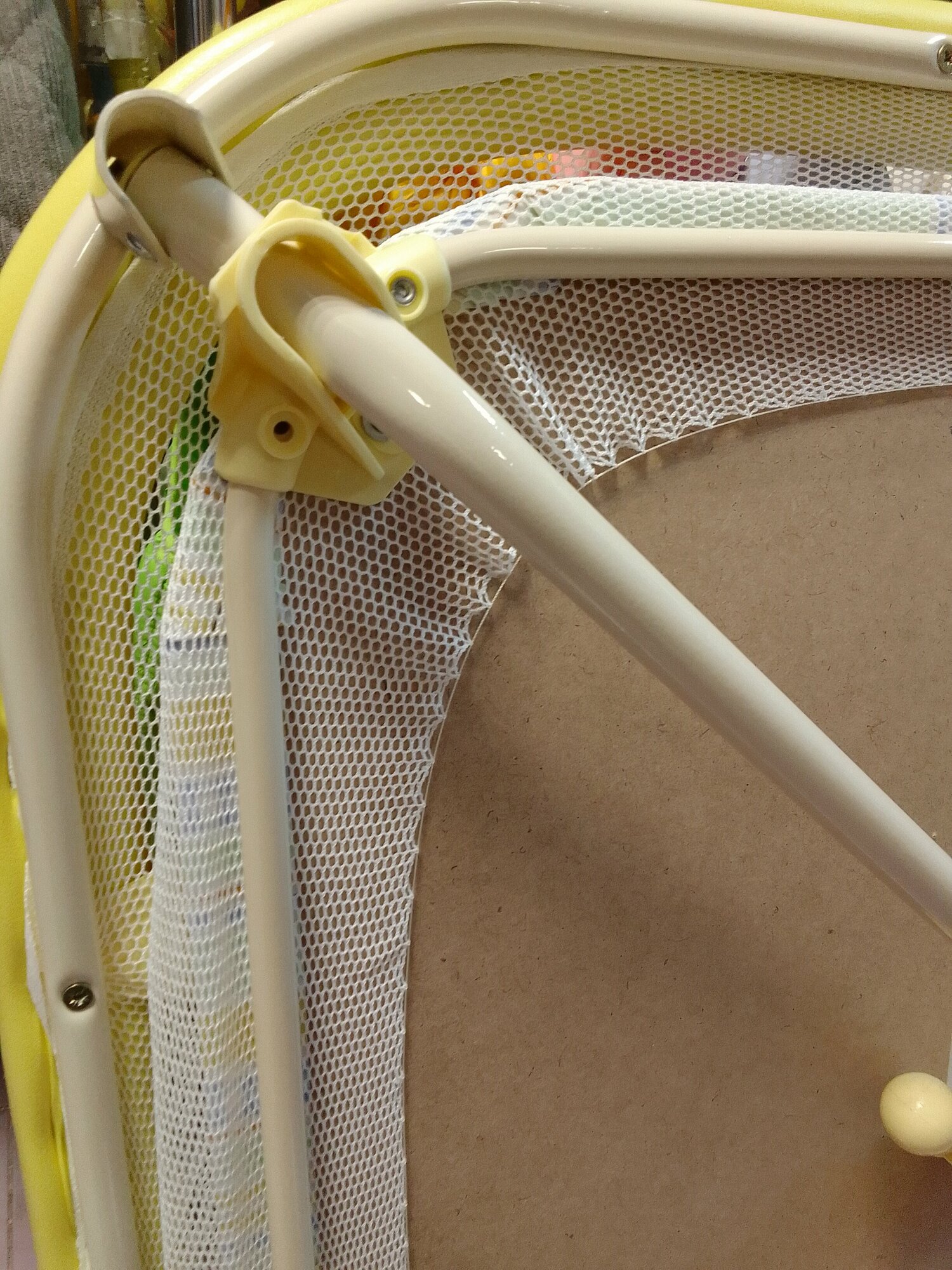 - Мягкая сетка, если ребёнок упадёт на сетку , то может ударится о ножку манежа.