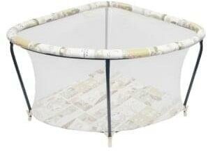 Особенность этого уютного манежа состоит в том, что с одной стороны его стенки образуют прямой угол, а с другой - полукруг. Благодаря этому манеж можно поставить в любом подходящем уголке.