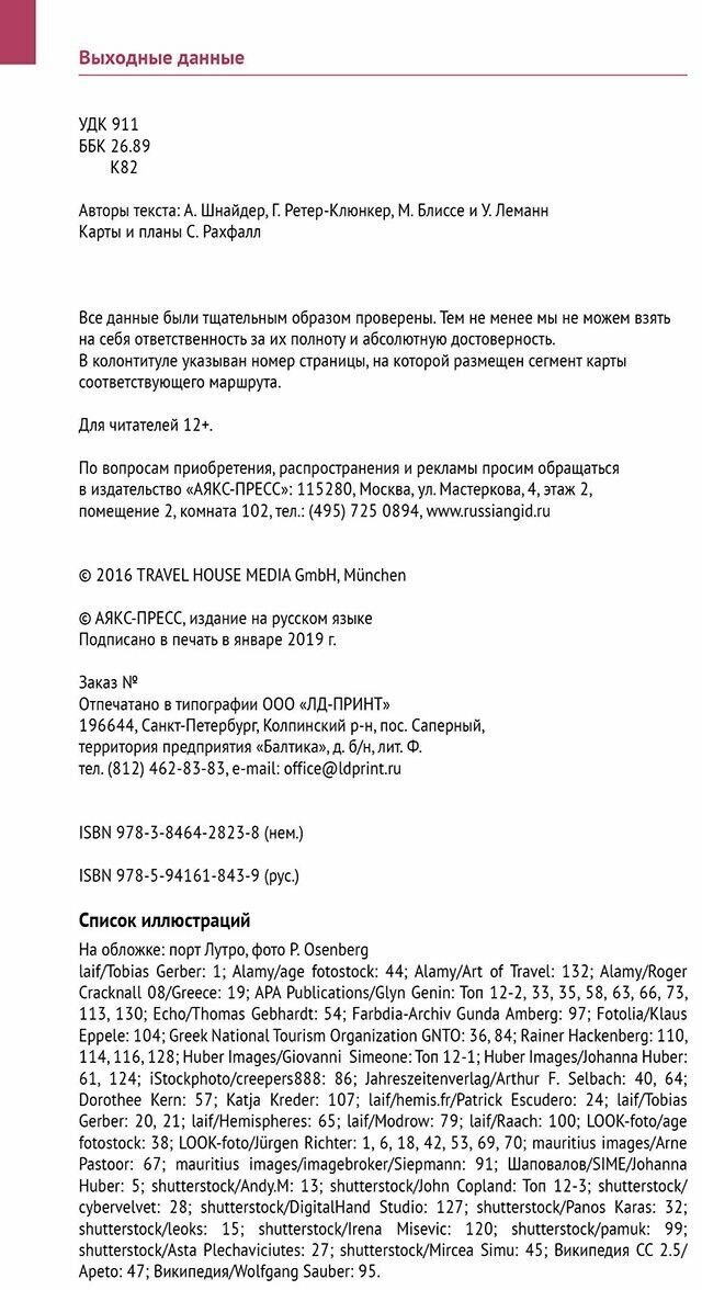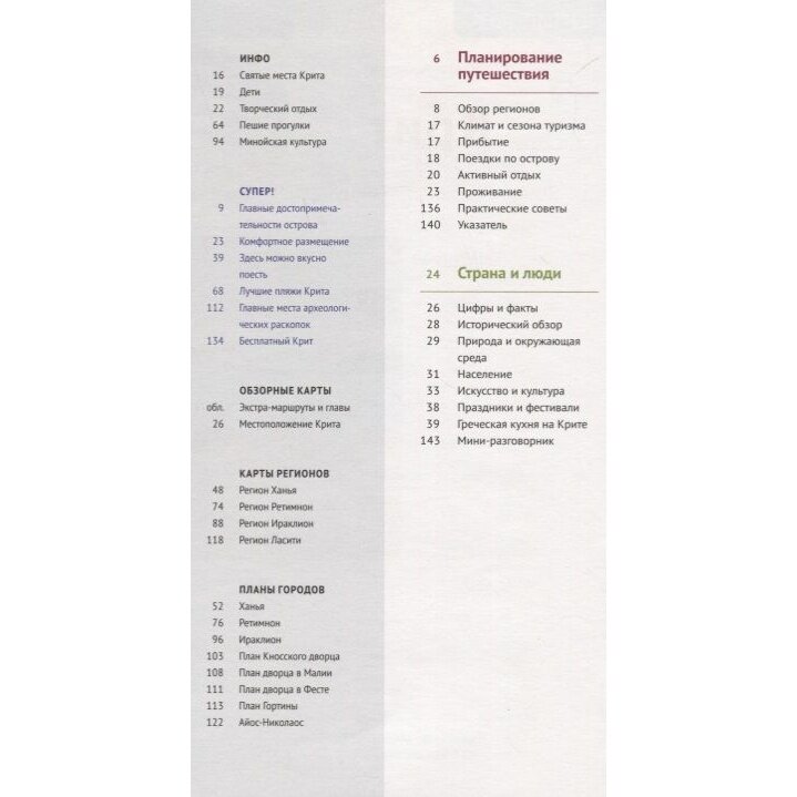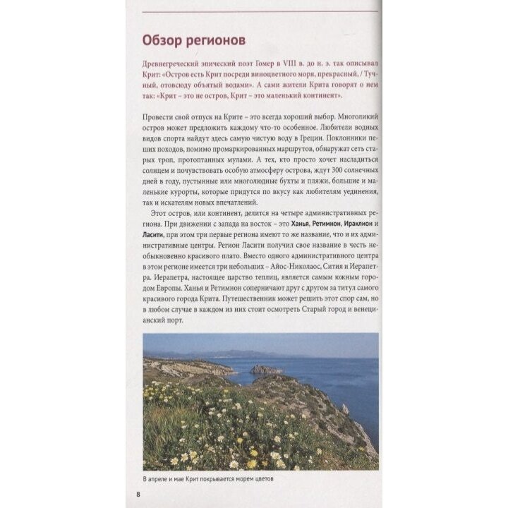 Отличное издание до тех, кто планирует свой отпуск на Крите. Карта компактно помещается в кармашек на обложке , информация более чем актуальная . Вместе с заранее скаченным навигатором maps.me этот путеводитель -книга открыл перед нами волшебный Крит. В книге есть все начиная от географии и истории КРИТА До адресов кафе и магазинов . Понравилось и информация про традиционные деликатесы , обязательно купим теперь в подарок родне и друзьям греческий сыр !