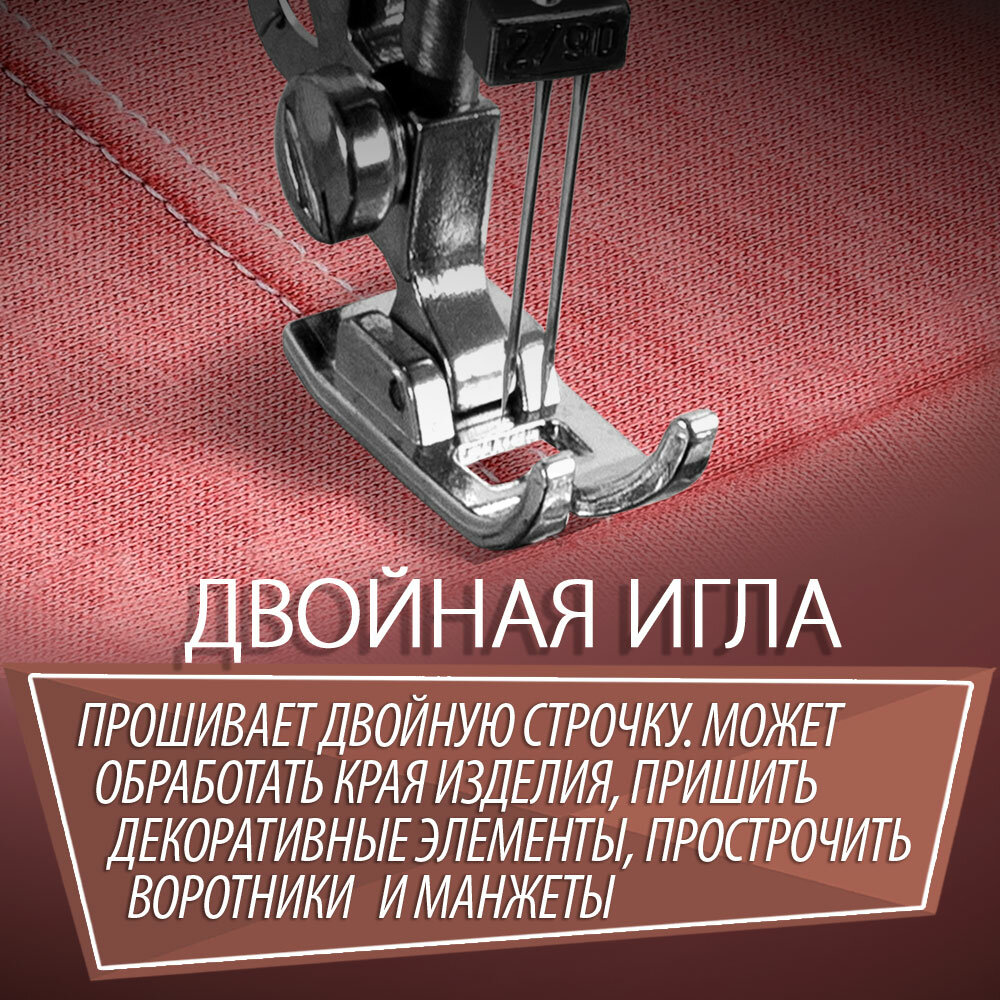 | Дополнительная комплектация | комплект игл, нож-вспарыватель, шпулька, педаль, отвертка, катушкодержатель, двойная игла, инструкция, подсветка рабочей зоны (LED) |
