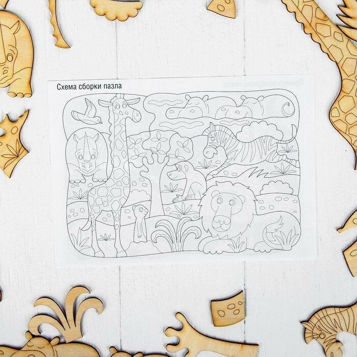 Деревянный пазл Саванна входит в новую серию деревянных пазлов для малышей Собери! Раскрась! Играй! Отличительной особенностью данной серии является то, что ребенок, собирая пазлы, сможет не только познакомиться с окружающим миром (домашние, дикие животные, город и др.), но и займется творчеством, раскрасив получившуюся картину. Правда для этого ему нужно будет воспользоваться своими красками или карандашами, которые есть в арсенале каждого ребёнка (краски, карандаши, фломастеры и кисточка в набор не входят). Фигурки животных из набора вырезаны отдельно, и ребенок может использовать их для других игр, которые он придумает сам или вместе со взрослыми.Детали пазла изготовлены из фанеры и вырезаны путем лазерной резки, рисунок нанесен методом лазерной гравировки.