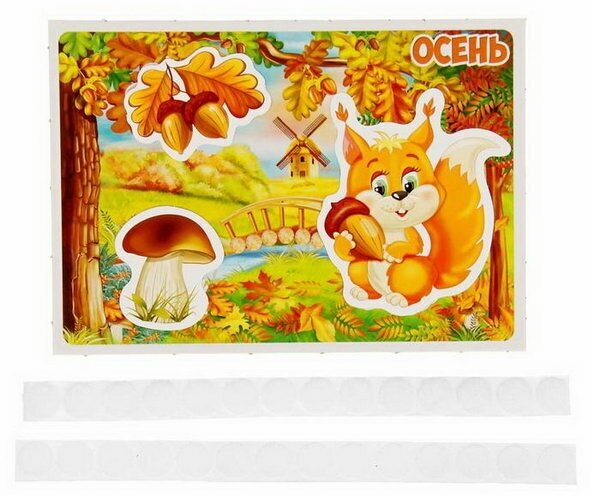 | Состав набора | 5 карт-основ, 15 карточек, 28 липучек |