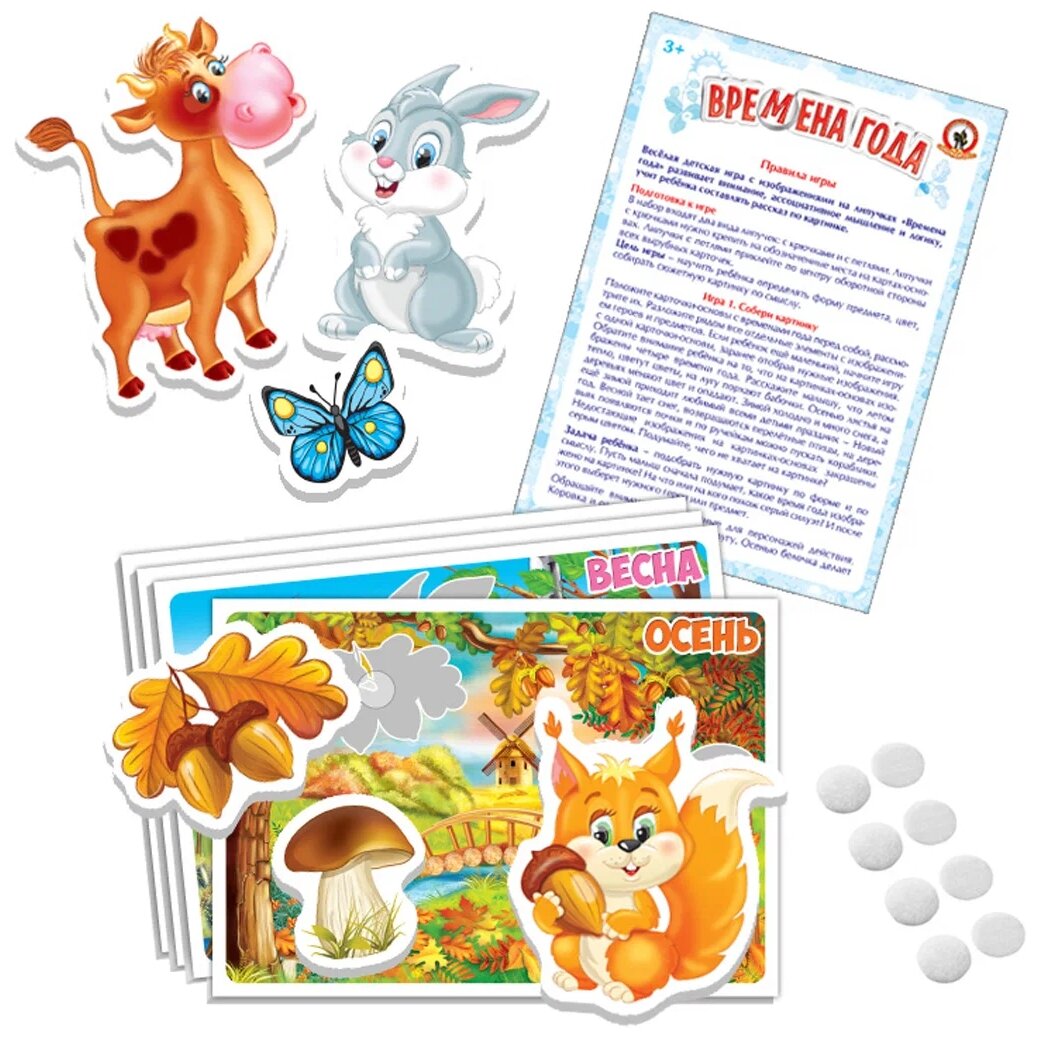 "Настольная игра ""Времена года"" поможет интересно провести свой досуг всей семье, одновременно являясь хорошим учебным пособием для развития малыша. В игровой форме ребенок учится определять времена года по признакам и предметам, составлять связный рассказ по картинке. Игра развивает память, внимание, наблюдательность, ассоциативное мышление, логику, любознательность, формирует интерес к окружающему миру. "