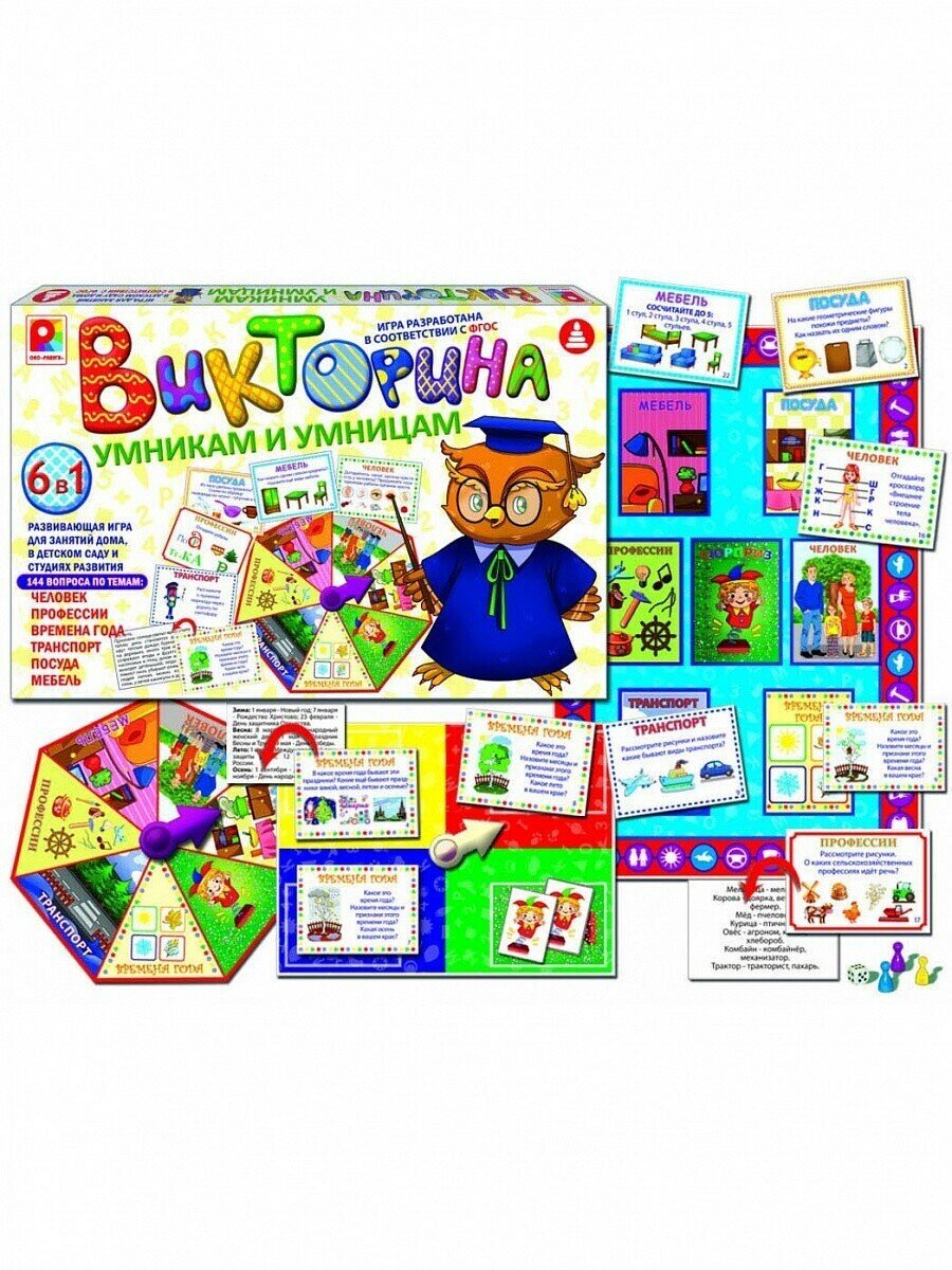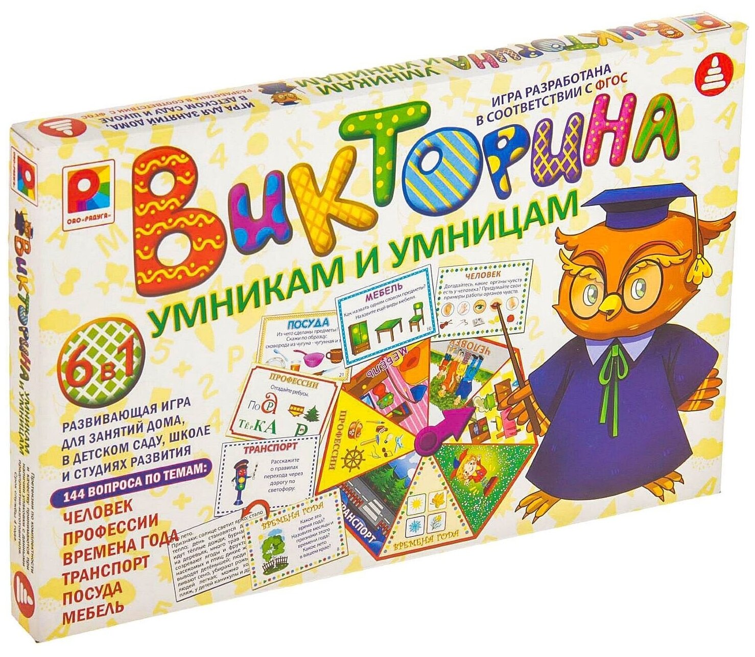 Настольная игра Радуга 6 в 1 Викторина - Умникам и умницам Настольная игра Умникам и умницам Викторина