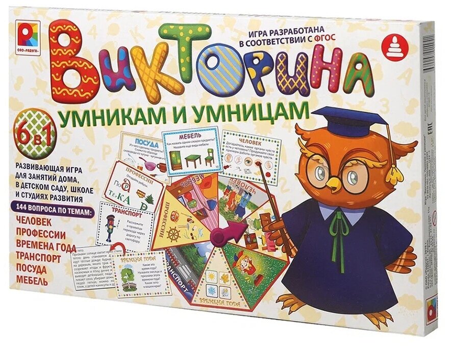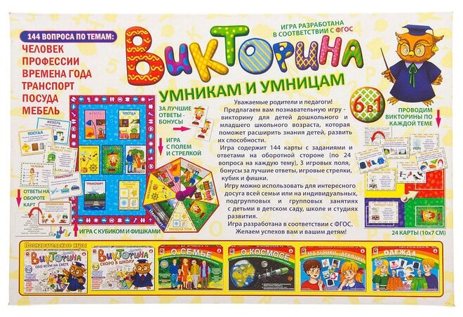 Сервис сравнения цен СкидкаГИД предлагает сравнить цены на товар «Настольная игра Радуга 6 в 1 Викторина - Умникам и умницам Настольная игра Умникам и умницам Викторина»