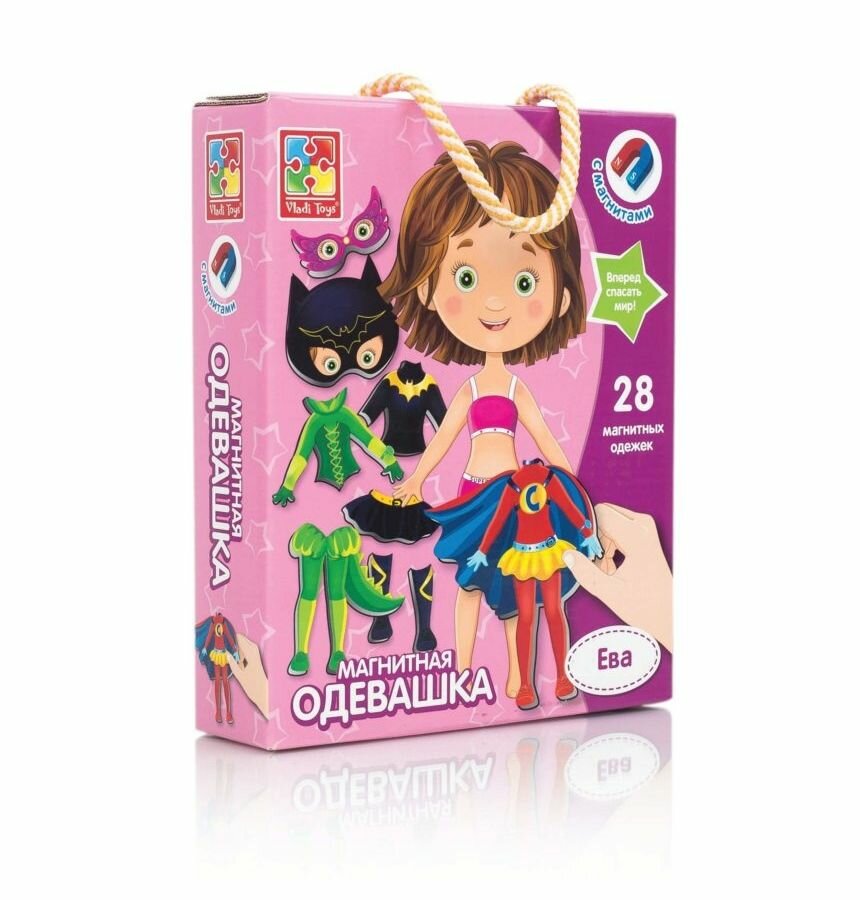 Мир супергероев открывается перед вами… Ева надевает костюм – и превращается в отважную героиню! Теперь девочка готова спасать мир. А вы? Магнитная игра-одевашка предлагает отправиться за приключениями вместе с Евой. Подбирайте для девочки наряды и читайте, какую силу она обретает. Девочка-кошка, СуперЕВА, Неоновая Ящерица, Лисичкагёрл и другие супергерои ждут вас. В книжечке-инструкции вы найдете описания суперсилы каждого героя, а также тематические задания для развития внимания, памяти и логического мышления. Пока малыш играет, мама отдыхает! Ребёнка будет не оторвать от игры. А простые правила понятны без слов. С магнитной куколкой малыш может играть самостоятельно дома, на природе, в дороге.