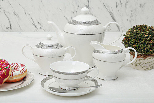 | Состав набора | блюдце - 6 шт.; десертная тарелка - 6 шт.; заварочный чайник - 1 шт.; молочник - 1 шт.; сахарница - 1 шт.; чашка - 6 шт. |