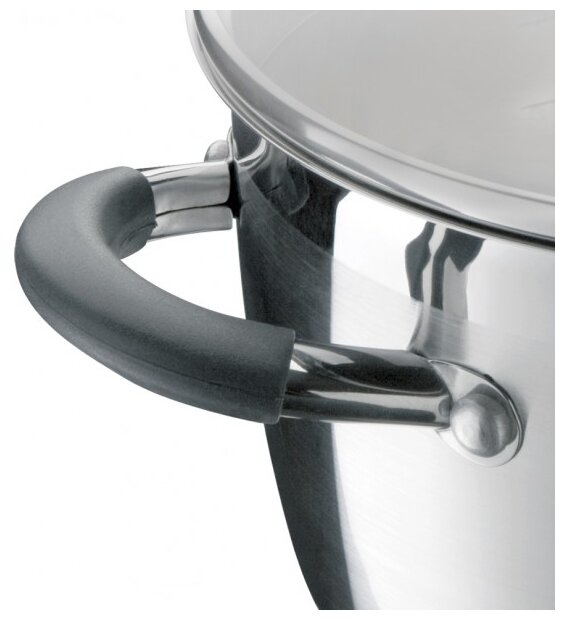 | Прочие особенности и свойства | Высококачественная пищевая сталь 18/10 , Толщина стенок 0,6 мм., Тройное вштампованное, а затем вплавленное дно 5.0 мм., Комбинированная (зеркальная + матированная) обработка внешней поверхности. , Отметки литража на внутренней поверхности посуды. , Эргономичные крышки из термостойкого стекла со специальным ободком для удобного слива жидкости (2 диаметра отверстий) , Ненагревающиеся ручки из нержавеющей стали с вставками из силикона. , Надежное клепочное крепление. , Плавный переход от дна к стенкам. , Подарочная упаковка с ручкой. , Буклет с рецептами. , Универсальность относительно источников тепла. |