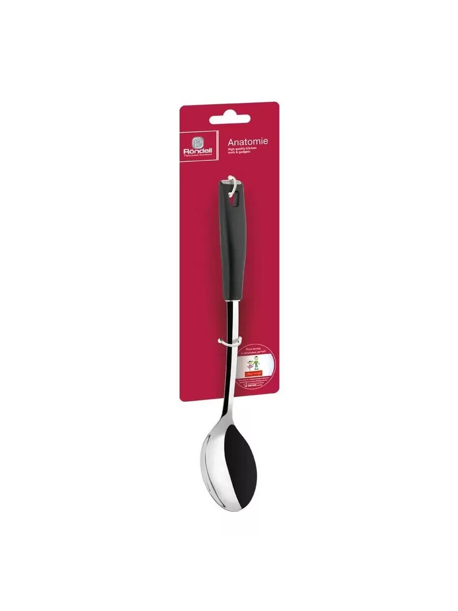 Ложка поварская Rondell Anatomie Материал рабочей поверхности - высококачественная нержавеющая сталь 18/10. Толщина рабочей поверхности - 2.5 мм. Материал ручки – высококачественный пластик. Анатомическая форма рукоятки. Зеркальная полировка стальных частей. Упаковка - картонная подложка. Подходит для посудомоечной машины.
