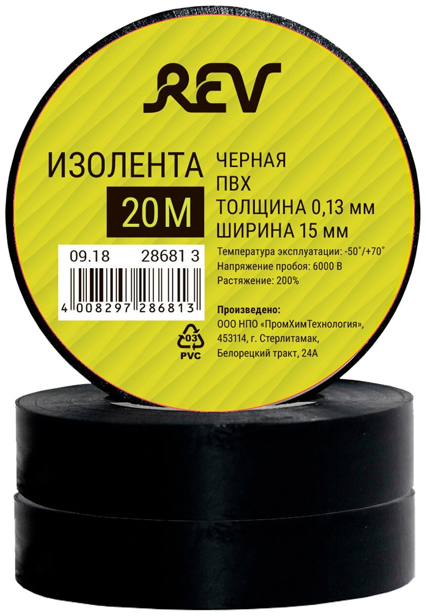 Модель: Изолента ПВХ REV 20 м черная 15 мм