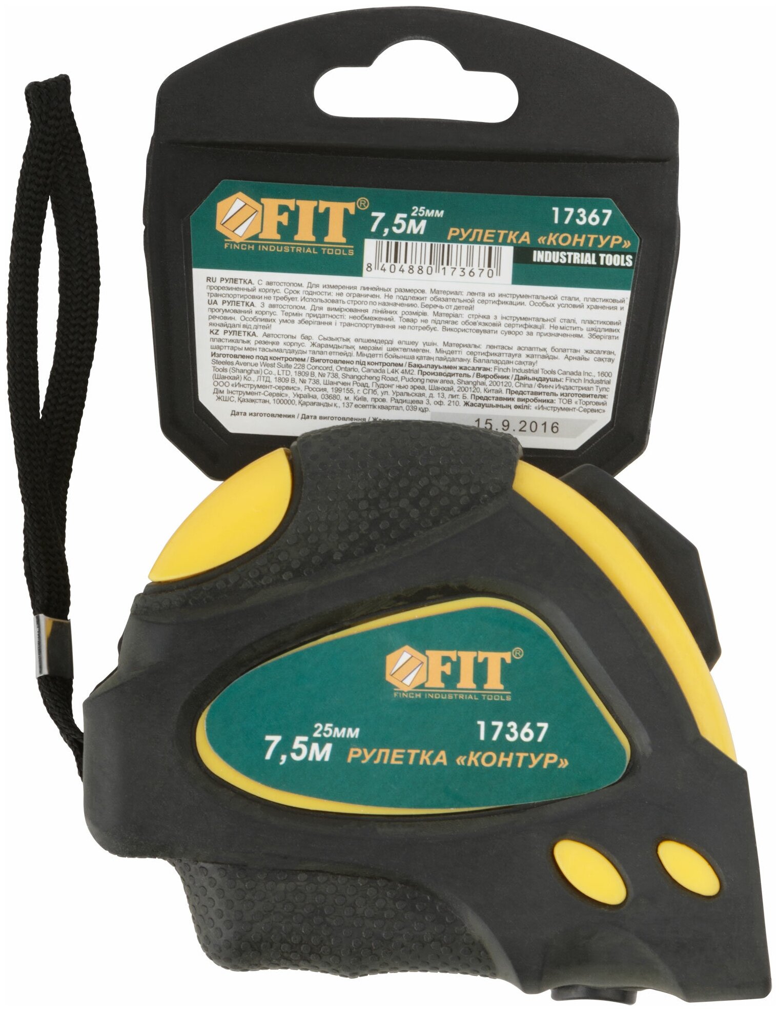 Рулетка 7.5 м x 25 мм FIT Контур (автостопор, прорезиненный корпус)