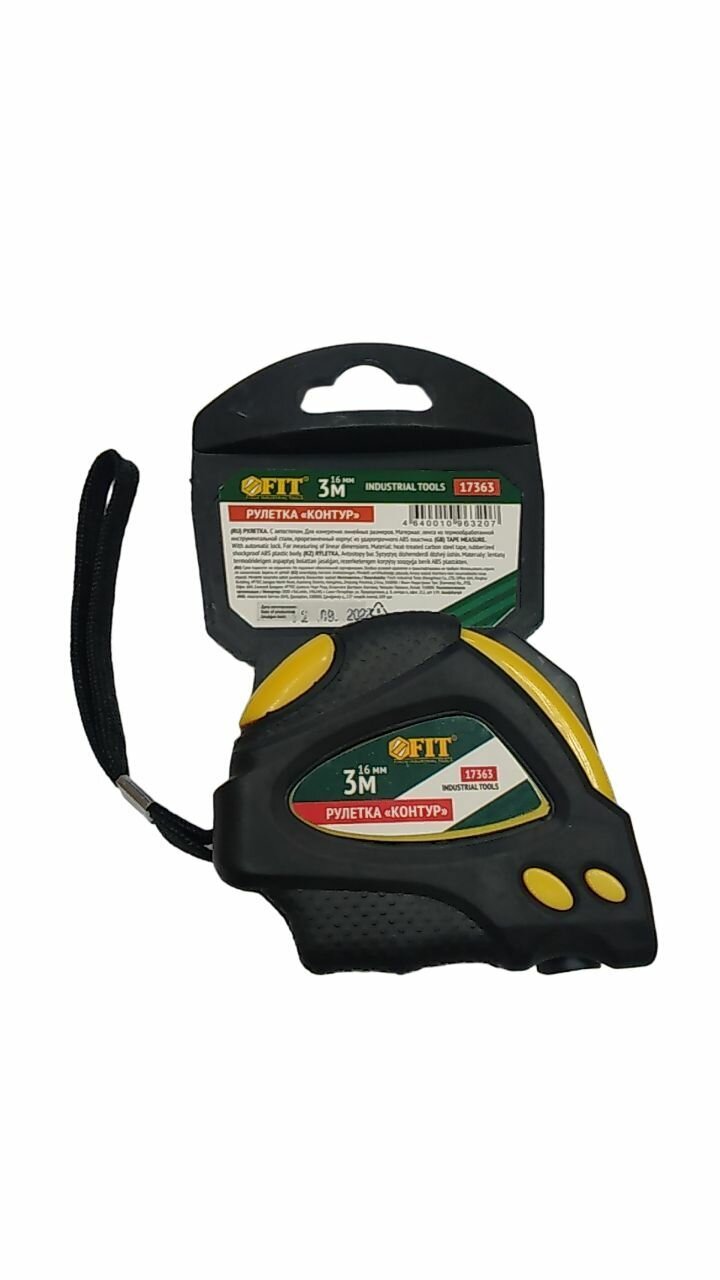 Рулетка 3 м x 16 мм FIT Контур (автостопор, прорезиненный корпус)